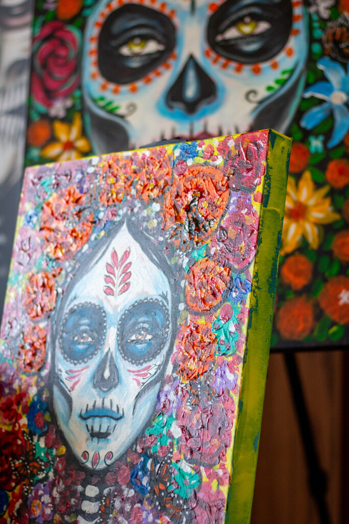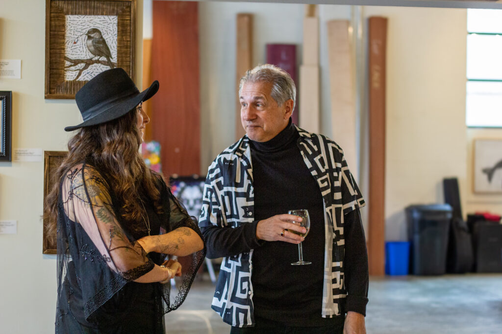Guests moved between moments, gathering with a glass in hand, connecting with local vendors, and exploring the layers of creativity throughout the room. There was a sense of discovery—each conversation, each interaction adding to the experience. Nearby, Steven Borelli brought a different kind of energy, creating live art throughout the evening. Watching his process unfold in real time added a dynamic element—art not just displayed, but felt as it came to life in front of us.