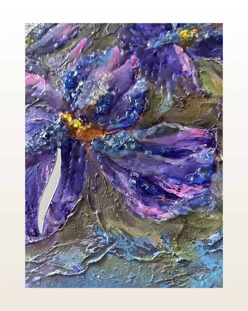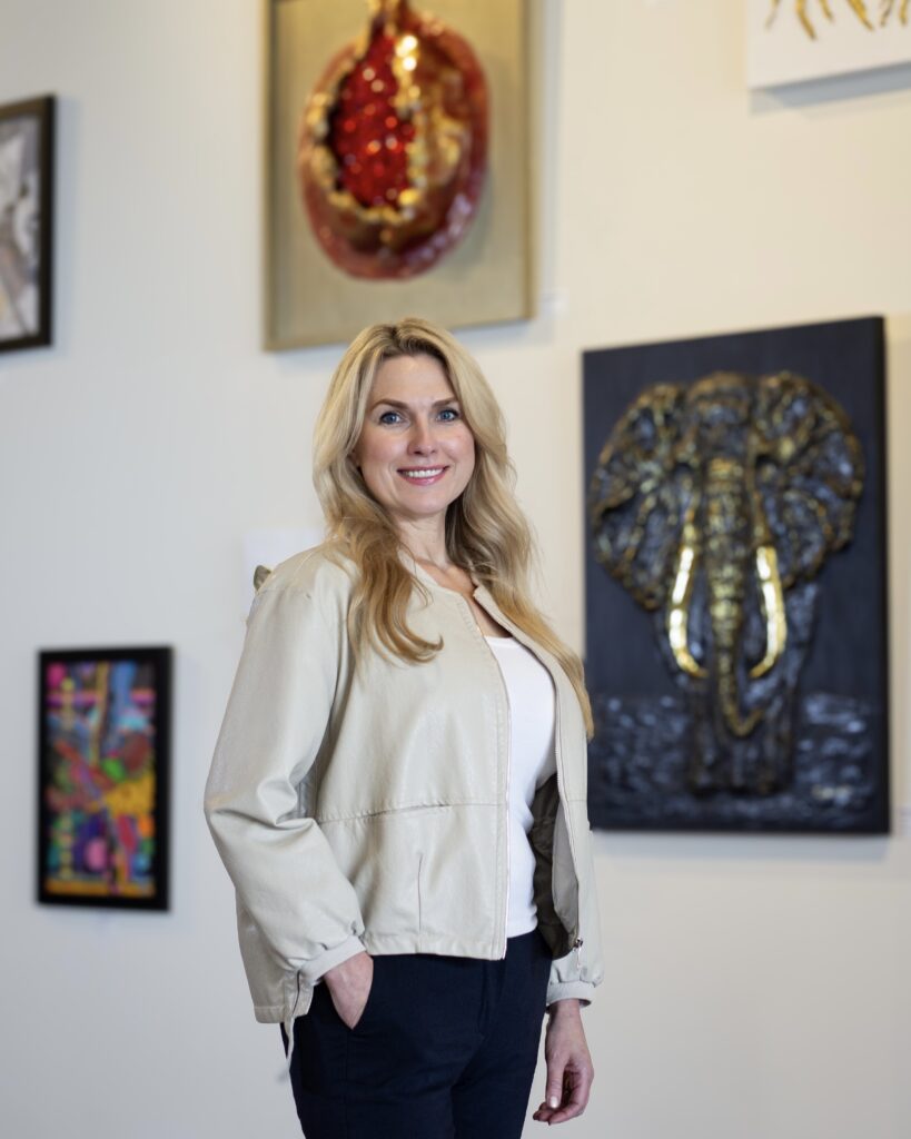 Her sculptural, textured wall pieces exist at the intersection of painting and relief, where material and light interact in quiet, captivating ways. Using acrylic, modeling paste, resin, and subtle gold accents, she creates luminous surfaces that shift throughout the day, offering a sense of depth that is both visual and emotional. Drawing inspiration from symbolic forms such as flowers and animals, her work explores themes of balance, strength, and transformation-inviting a calm, grounded energy into any environment.